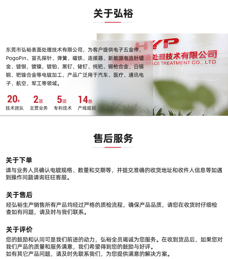HYP弘裕電鍍專注于精密連接器表面滾鍍金:車削件鍍金、pin針探針鍍金、針頭針管鍍金、端子連接器鍍金、磁鐵表面鍍金、醫(yī)療針鍍金。產(chǎn)品廣泛用于汽車、醫(yī)療、通訊電子、航空等領(lǐng)域。